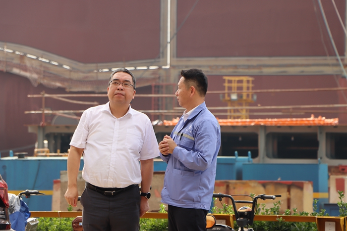 6月26日下午,太倉(cāng)市委常委、太倉(cāng)港經(jīng)濟(jì)技術(shù)開(kāi)發(fā)區(qū)黨工委副書(shū)記、管委會(huì)副主任戚振宇調(diào)研揚(yáng)子三井,集團(tuán)副總經(jīng)理、揚(yáng)子三井總經(jīng)理宋書(shū)明介紹了當(dāng)前新船型研發(fā)、手持船型訂單、首制4萬(wàn)立方LPG清潔能源運(yùn)輸船建造進(jìn)度、技改提效內(nèi)部挖潛及未來(lái)3~5年企業(yè)發(fā)展規(guī)劃和前景等生產(chǎn)經(jīng)營(yíng)情況。