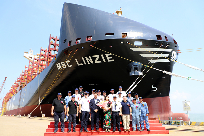 9月4日,我集團(tuán)與地中海航運(yùn)共同為新船舉行了命名祈福儀式。命名人Martyna Orzechowska女士,地中海航運(yùn)新造船部門(mén)駐揚(yáng)子鑫?,F(xiàn)場(chǎng)辦經(jīng)理羊海濤先生,我集團(tuán)總經(jīng)理助理兼揚(yáng)子鑫福造船總經(jīng)理?xiàng)钛┫壬?,挪威船?jí)社江陰站靖江部門(mén)經(jīng)理莊華平先生,以及船東監(jiān)造組、船檢、船廠、船員相關(guān)人員代表及嘉賓出席了儀式。命名人Martyna Orzechowska女士將新船命名為“MSC LINZIE”輪,為新船砍纜、擲香檳禮、拉響汽笛,并與船長(zhǎng)共同在新船畫(huà)框上署名留念,祝福隨船船員航行平安,為船東和租家?guī)?lái)榮譽(yù)和財(cái)富。