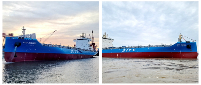 Recently, the continuous abnormal hightemperature has brought a great test to the shipbuilders. In the face of thehot summer, each staff sticks to their jobs and complete the production schedule with their hard work while ensure quality and quantity. This week, NYZdelivered two 1800TEU container ships of the same type, M/V “SITC RUNDE” and M/V“SITC MINGDE” to SITC.