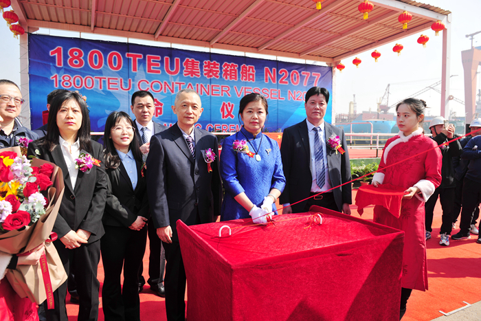 At 10:18 a.m. on March 28, the 1800TEU containership, constructed by Yangzi Xinfu ShipyardChangbo Factory for Dalian Zhida, wasfully paid and departured from the shipyard pier, setting sail under the name"A KOBE" (Kobe).
